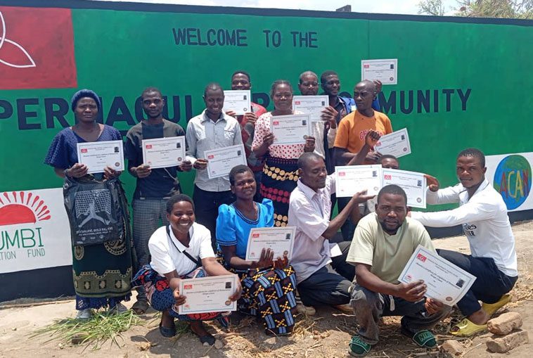 In partnership with the Gumbi Education Fund, ACAN donors have since 2021 paid for young people to be trained to train other farmers in sustainable farming, at the Permaculture Paradise Institute in Malawi, growing a wide range of local crops, fruit and nut trees without chemical fertilisers. Money raised from ACAN donors has purchased 3 acres of land for the demonstration farm – and funded the building of a store, indoor and outdoor classrooms, water storage for irrigation, a fish pond, a kraal for pigs, beehives, tools and seeds, and in 2025 a farm motorbike (partially funded by the UK Friends of Malawi Association).